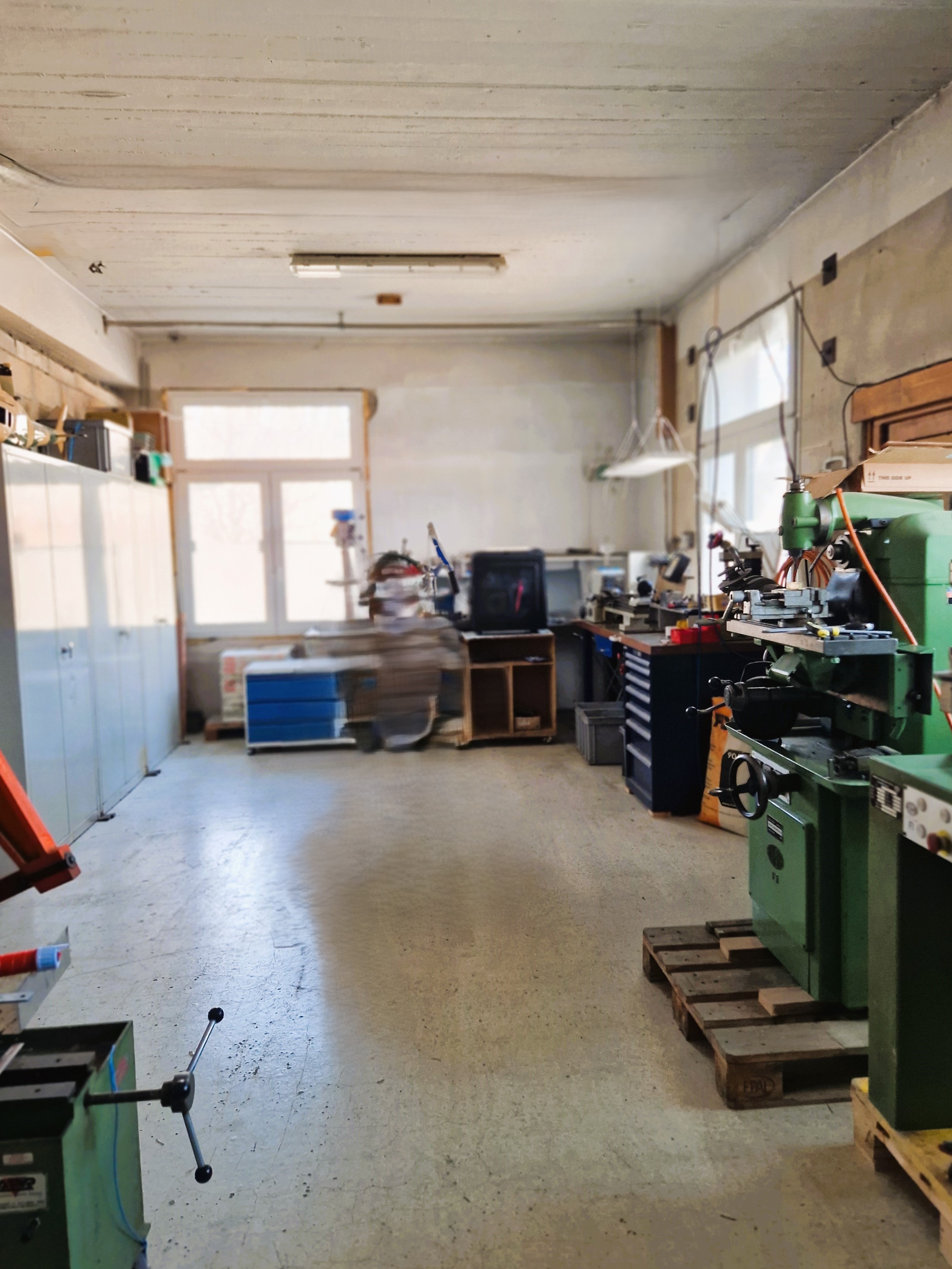 Rez-de-chaussée – env. 156 m² Un vaste atelier artisanal ou industriel permettant l’exploitation de nombreuses activités professionnelles. Cet étage comprend également :